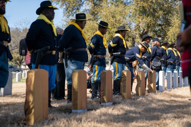 WASHINGTON — The Department of Veterans Affairs National Cemetery Administration dedicated new headstones for 17 World War I Black Soldiers of the 3rd Battalion, 24th Infantry Regiment, during a memorial ceremony Thursday, Feb. 22, 2024, at Fort Sam Houston National Cemetery in San Antonio, Texas.