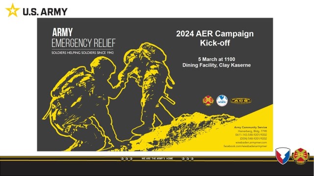 U.S. Army Garrison Wiesbaden will kick off its 2024 Army Emergency Relief Campaign during a ceremony at the Stronger Together Café, from 11 a.m. to 12 p.m., on March 5. This year’s campaign has large donation coffers to fill, if it hopes to match or exceed last year’s award-winning AER efforts.