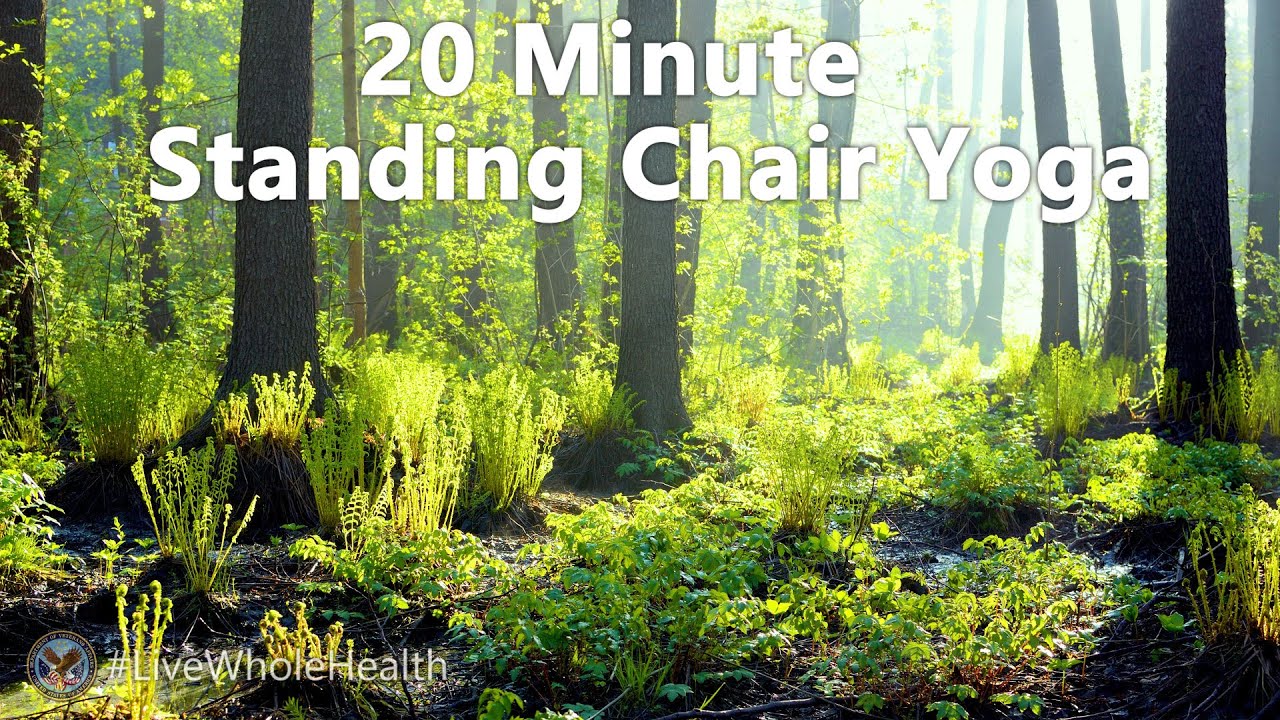 Join Katherine Hillgren from the St. Louis VA in this 20-minute, gentle standing yoga sequence where she uses a chair for support. Although this session is taught standing, you could adapt it and follow along in a chair (with locked or no wheels).