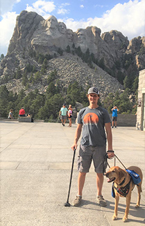 I have several adventures planned with my wife, Annalise, and my service dog Elliott, who has been with me for about five years. His body harness has a stiff handle and they are instrumental in helping me keep my balance while walking. I recently received a recumbent E trike from Aurora VA in Colorado where I have my annual MS exam. I’m up to five miles per trip with enough energy to walk around. I’ve also learned about adaptive golf. I was captain of the golf team in high school and it was something I thought I had to give up with having MS. But through adaptive assistance and lessons, I’m learning to golf again.
