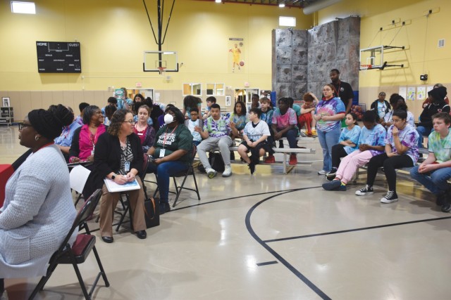 Surrounded by students of varying ages seated on bleachers, Greta Buccellato, Fort Cavazos deputy to the garrison commander, Peter Craig, Directorate of Family and Morale, Welfare and Recreation director, and Sheila Curtis, chief of Fort Cavazos Child and Youth Services, listened as the Teen Chain of Communication weighed in on issues that affect the way they live and learn.