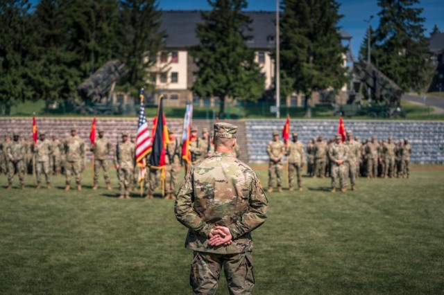 U.S. Army Lt. Col. Daniel Corbett assumed command of the 5th Battalion, 7th Air Defense Artillery Regiment, 10th Army Air and Missile Defense Command, from Lt. Col. Steven Rachamim in a ceremony on June 1, 2023 at Baumholder Kaserne, Germany. Service members, family and friends took part in the ceremony to support the new battalion commander and to honor the accomplishments of Rachamim. (U.S. Army Photo by Staff Sgt. Robert P Wormley III)