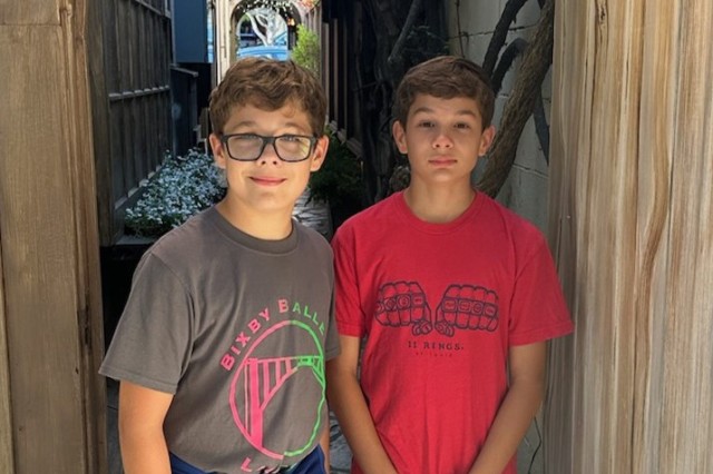 Nico and Remy Jones, 13-year-old twins and military children who are currently stationed at the Presidio of Monterey, pose for a photo.