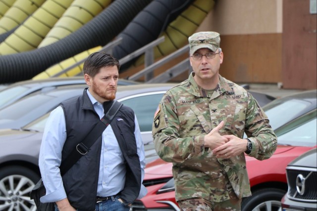 Garrison leaders escorted the Honorable Brendan Owens, who also serves as the Chief Sustainability Officer and Chief Housing Officer for the Department of Defense, on a walking tour of Clay Kaserne, which included both single Soldier and family housing areas. Throughout the tour they were able to discuss the garrison’s energy program and construction projects on the installation.