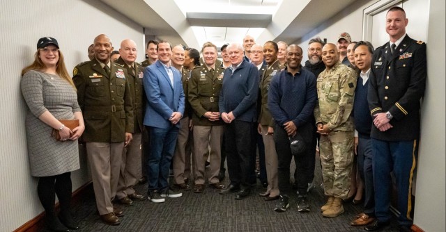 U.S. Army senior leaders, civilian aides, Soldiers, and local community leaders pose for a photo during the Chicago White Sox home opener game at Guaranteed Rate Field, Chicago, March 28, 2024. (Photo Credit: Maj. Shamika Hill)