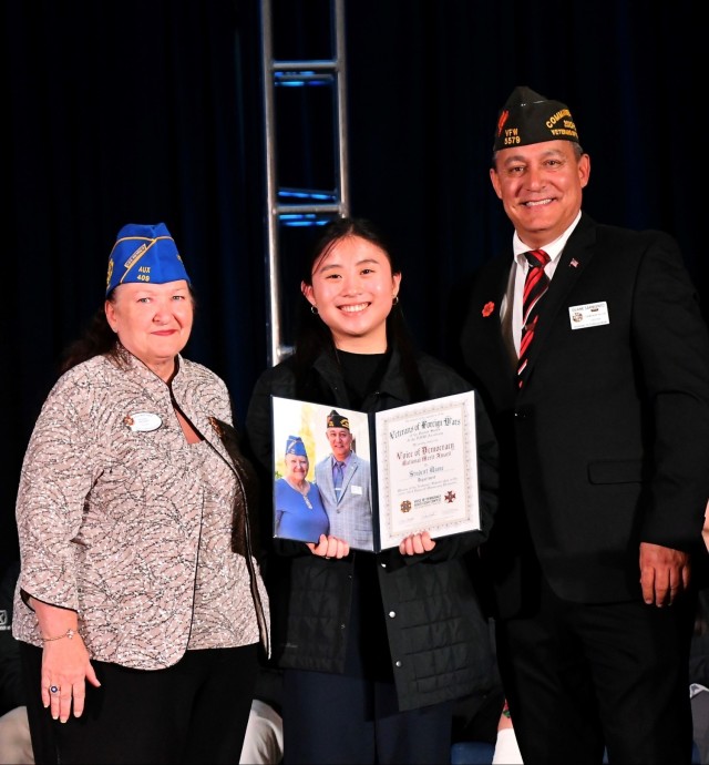 ANSBACH, Germany (April 19, 2024) – Ansbach Middle High School junior, Meredith Maxwell, was recently presented with a Veterans of Foreign Wars National Merit scholarship as a finalist in the Voice of Democracy audio-essay contest.