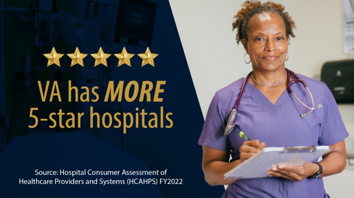 Five years ago, only 26% of VA hospitals received four or five HCAHPS Stars for Patient Survey Rating—rising to 72% in the latest April 2023 results. The recent HCAHPS data indicates that VA facilities outperformed community hospitals on all 10 core patient satisfaction metrics—including overall hospital rating, communication with doctors, communication about medication, care transition and more.