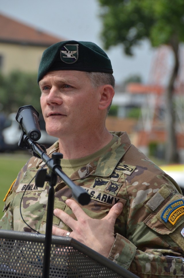 “It’s no secret that a position in Italy is one of the most sought after assignments in the U.S. Army. Gomlak said, in his remarks offered in both English and Italian. “It took me 23 years to finally get posted here.”