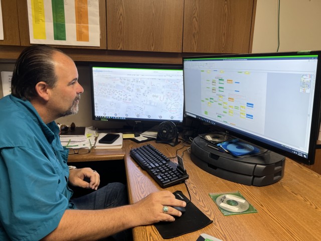 Kirk Farmer, manager of the Utility Monitoring and Control System, uses the UMCS to remotely monitor and manage more than 200 facilities. (U.S. Army photo by Christine Luciano, DPW Environmental)