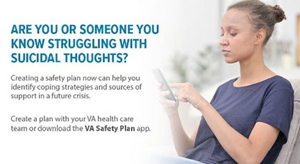 Creating a safety plan by identifying coping strategies and sources of support can help give suicidal thoughts time to decrease and become more manageable in a future crisis. Download the VA Safety Plan app or create one together with your VA health care team.