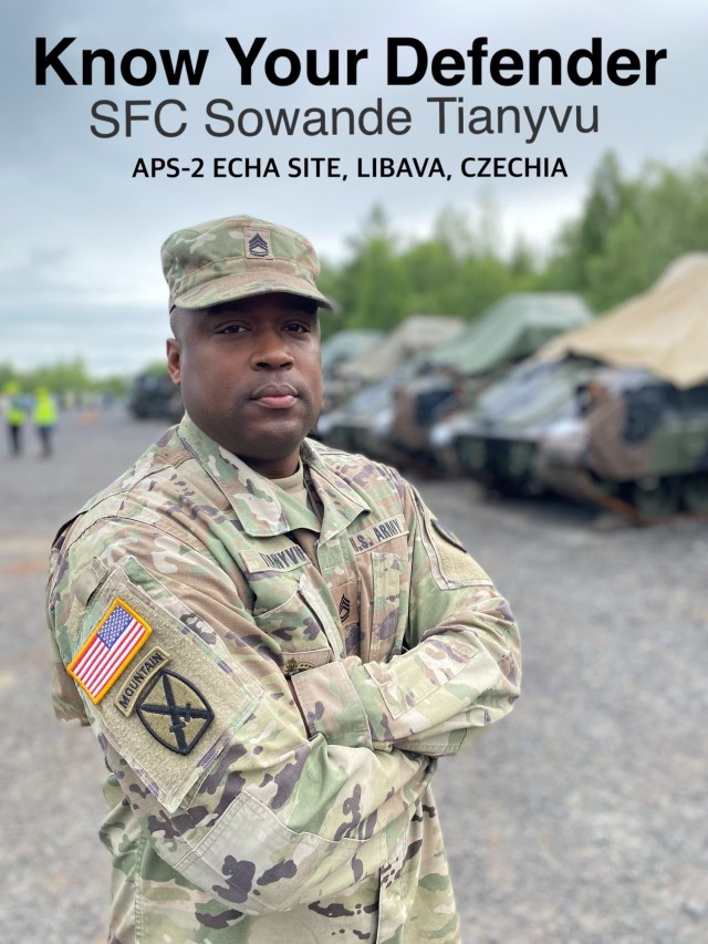 Army Sgt. 1st Class Sowande Tianyvu is the primary hand receipt holder and accountable officer at Army Field Support Battalion-Africa in Livorno, Italy. During DEFENDER 24, where AFSBn-Africa was tasked with mission command of an Army Prepositioned Stocks-2 Equipment Configuration and Hand-off Area at the Libava Training Area in Libava, Czechia, Tianyvu’s skills as accountable officer were extremely important.