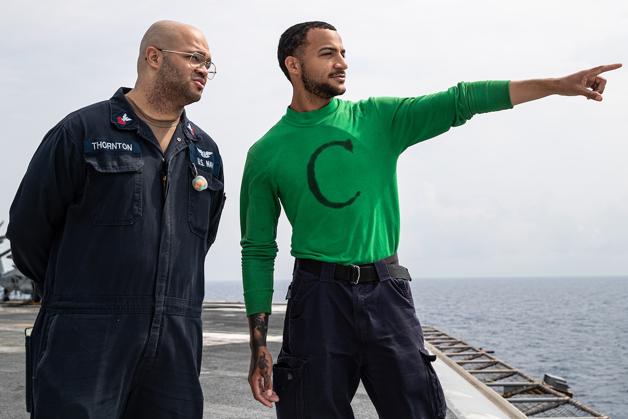 Aviation Boatswain’s Mate (Equipment), Air Department (Darion) & Intelligence Specialist, Intelligence Department (Jered)