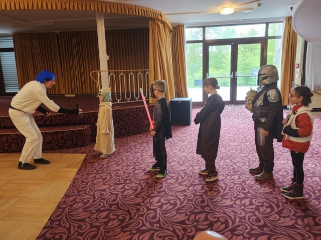 Approximately 450 fans of all ages came together to celebrate “May the 4th” and immerse themselves in the captivating universe of the galaxy far, far away, attending the “May the 4th Strongcon,” a two-day Star Wars convention held at the Armstrong’s Club in Kaiserslautern, Germany, May 4-5. The event featured a wide range of activities, including cosplay contests, merchandise vendors with comics, toys, games, anime and other collectibles, themed trivia contests with prizes, art exhibits, face painting, photos with Star Wars characters, a gaming room with free board game and trading card game demonstrations for all ages, and more. (Photo Credit: Linda Lambiotte)