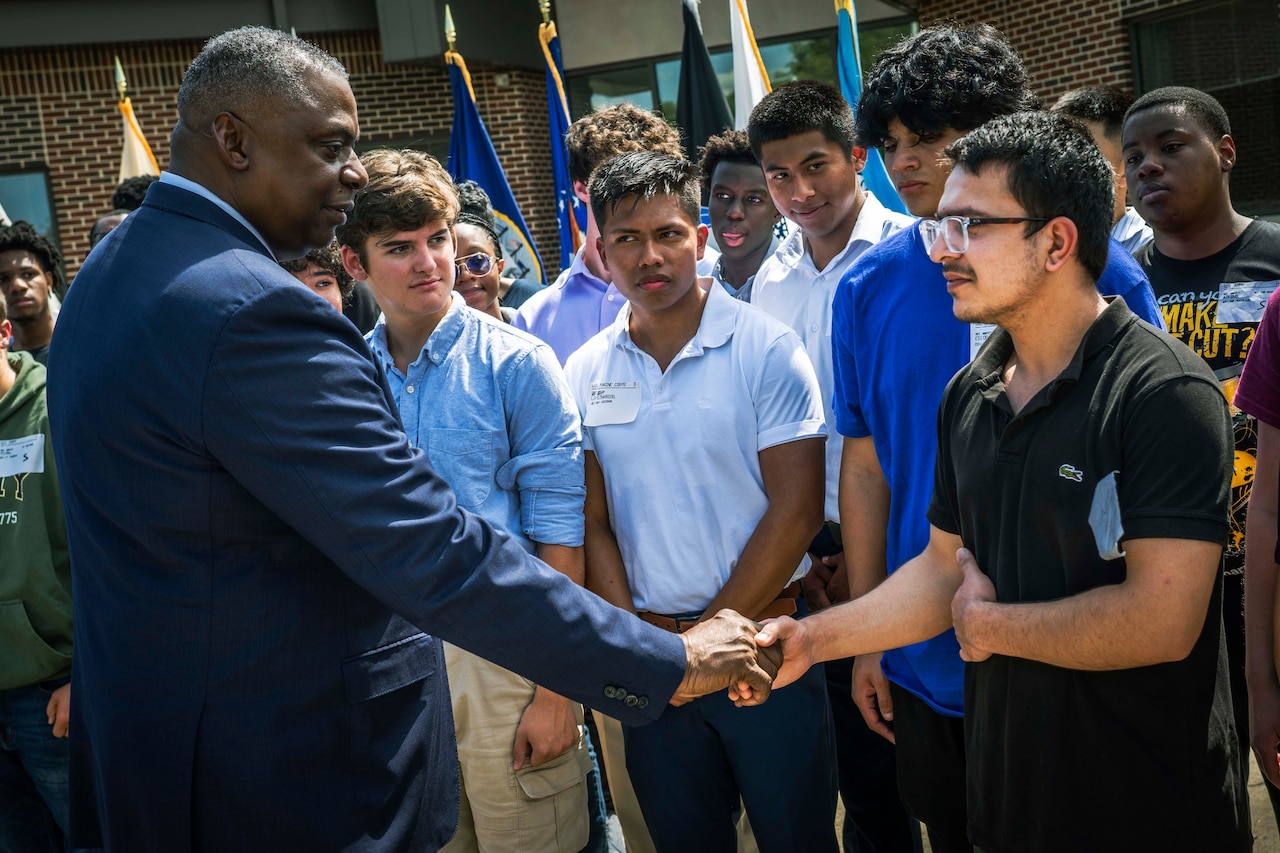 Austin, who spent 41 years in the Army, used the occasion to mark the 50th anniversary of the start of America’s all-volunteer military. He also took the time to meet the newest members and welcome them “to the greatest team in the world.”