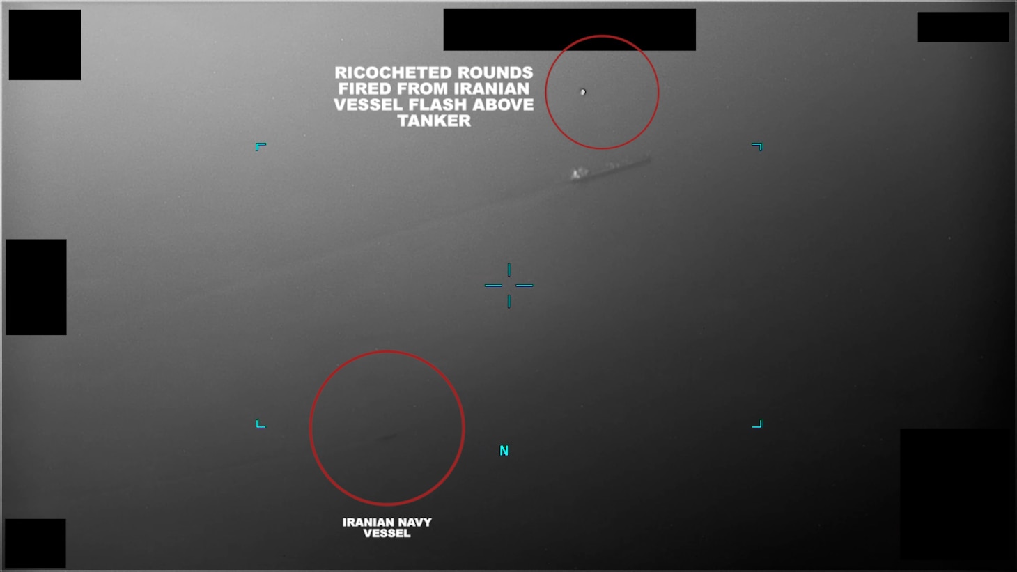 At 1 a.m. local time, one Iranian naval vessel approached the Marshall Islands-flagged oil tanker TRF Moss in international waters in the Gulf of Oman. The Iranian vessel departed the scene when U.S. Navy guided-missile destroyer USS McFaul (DDG 74) arrived on station. Additionally, the U.S. Navy deployed surveillance assets, including MQ-9 Reaper and P-8 Poseidon maritime patrol aircraft.