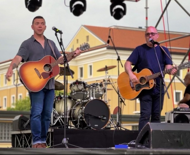 Staff Sgt. Dylan Francis (left) and Rick Scavetta perform “Can’t You See” by The Marshall Tucker Band at the Independence Day celebration, June 30 on Caserma Ederle.