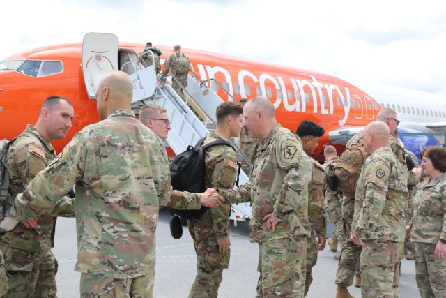U.S. Soldiers assigned to the 28th Military Police Company, 165th Military Police Battalion, 55th Maneuver Enhancement Brigade, 28th Infantry Division, Pennsylvania Army National Guard, leave Harrisburg International Airport, Middletown, Pa. May 19, 2024. The unit is mobilizing to Guantanamo Bay, Cuba, to conduct prison detention operations. (U.S. Army National Guard photos by Sgt. 1st Class Shane Smith)