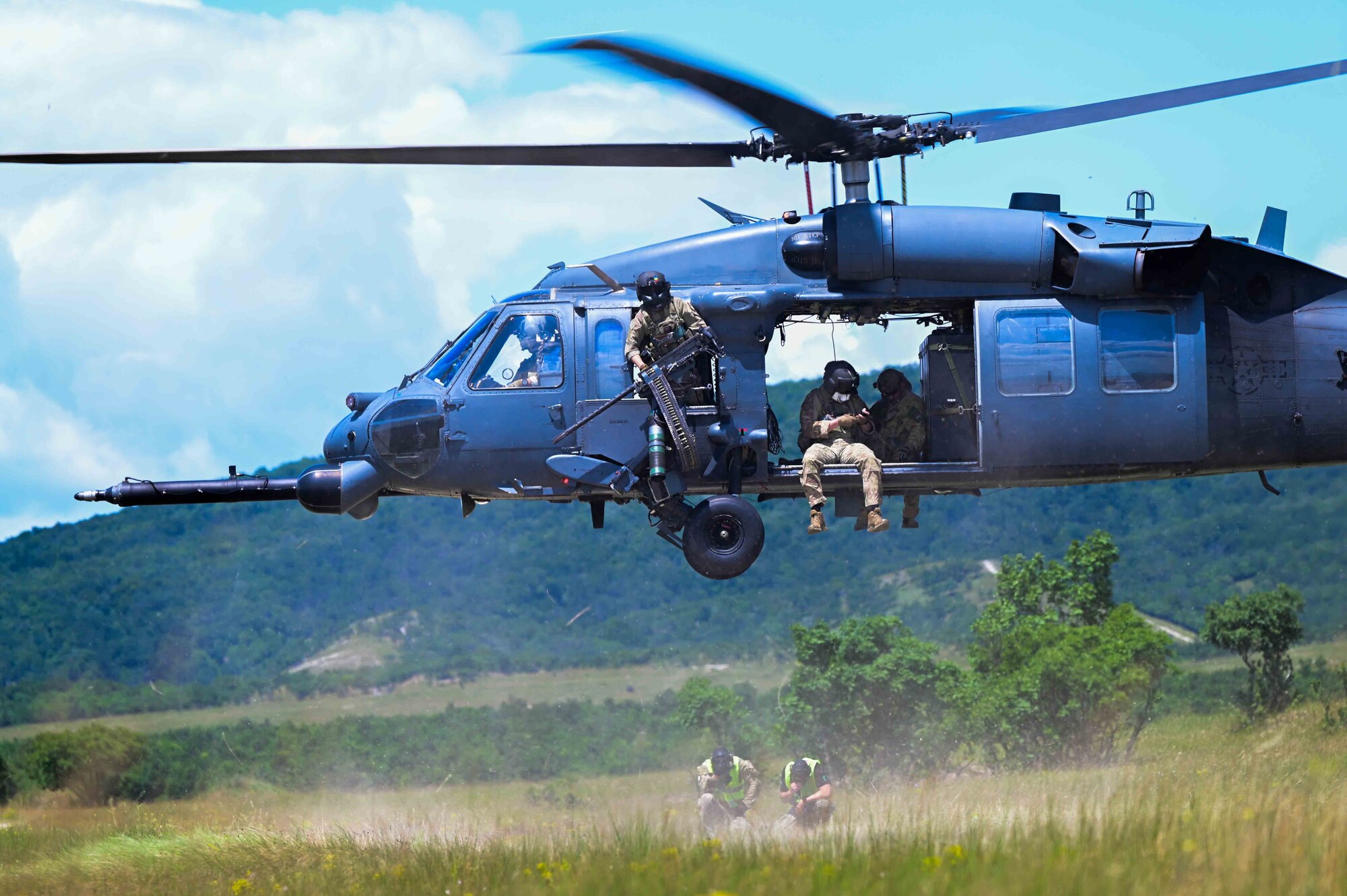 U.S. Air Force Tech. Sgt. Cody Ferro, assigned to the 439th Airlift Wing, Westover Air Reserve Base, Mass., completes final checks on the C-5M Super Galaxy at Jorge Chávez International Airport in Lima, Peru, during exercise Resolute Sentinel 23, June 29, 2023. Resolute Sentinel provides the opportunity to learn from and build partnerships with military and inter-agency personnel from the eight participating nations. (U.S. Air Force photo by 1st Lt. Cody Burt)