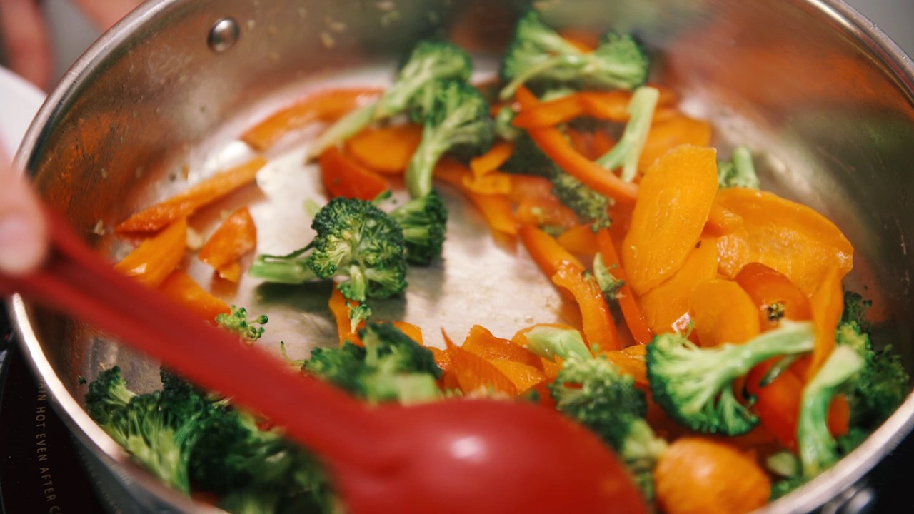A helpful tip for cooking a stir fry is to set the stage before you start cooking: Gather all your utensils, equipment and ingredients beforehand. Chop and mix everything before actually beginning the cooking process. Stir fry is a quick, high-heat cooking method and only takes about 5-8 minutes start to finish. You can feel free to go as fast or as slow as feels comfortable for you, but it is important to chop everything and have it ready to add so you can enjoy the cooking process without any stress.