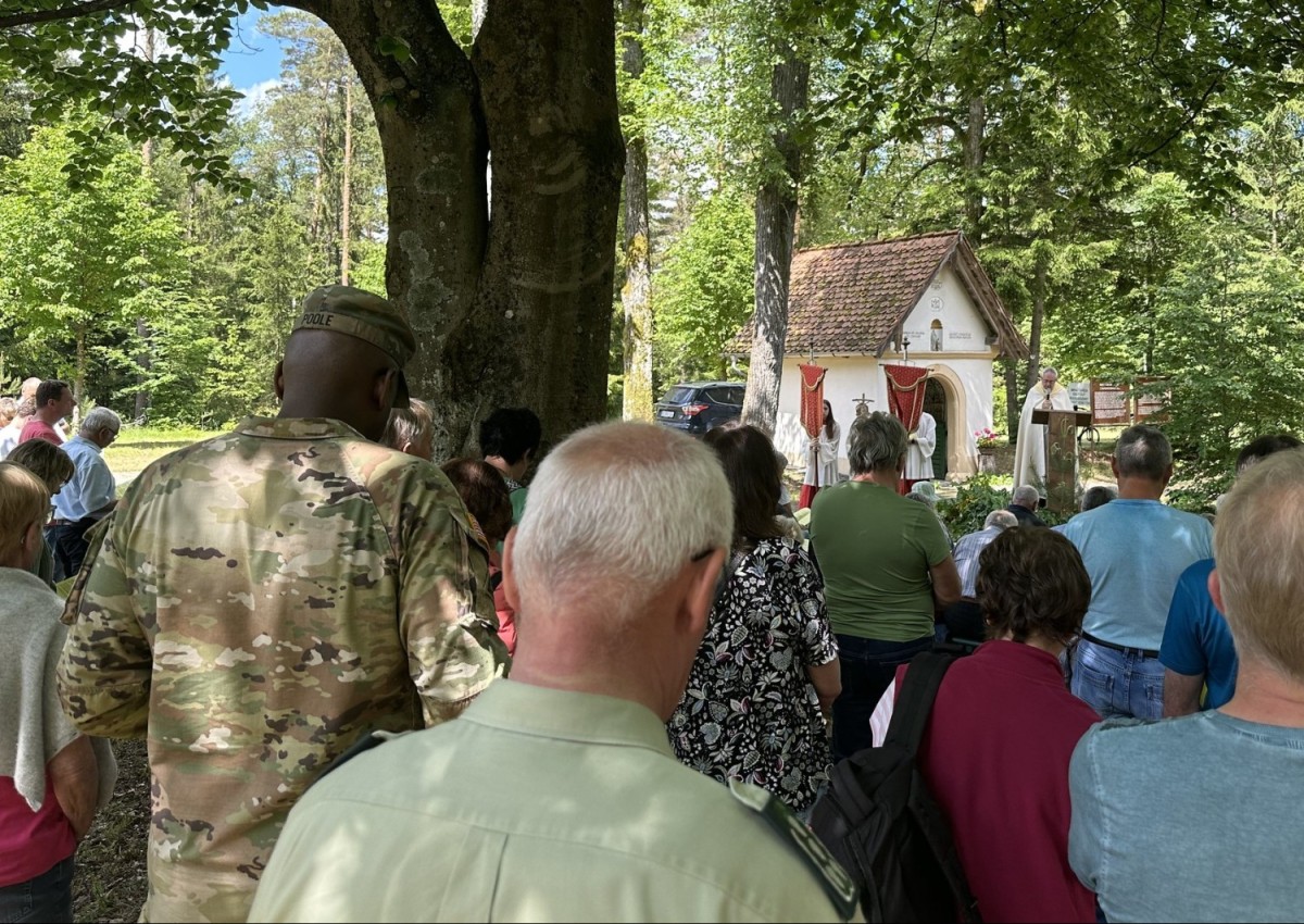 TOWER BARRACKS, Germany – Believers from Vilseck and the surrounding area made a pilgrimage to the Wolf Hunter Chapel in the restricted area of the military training area May 26, 2024.