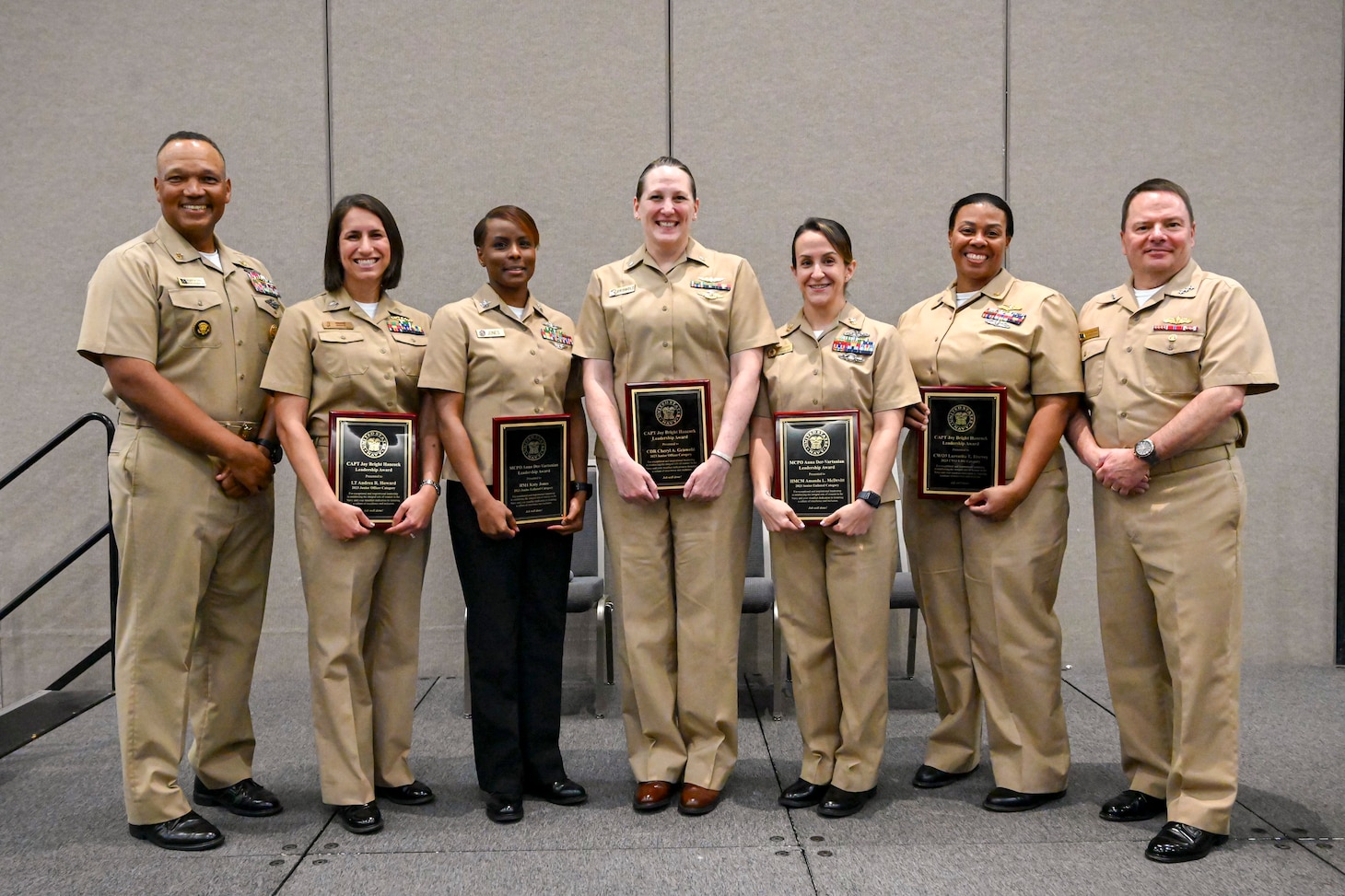 Chief of Naval Personnel Vice Adm. Richard Cheeseman Jr. and Personnel, Manpower, and Training Fleet Master Chief Delbert Terrell Jr. presented the Capt. Joy Bright Hancock and Master Chief Anna Der-Vartanian Leadership Awards to five Sailors at the 2023 Joint Women’s Leadership Symposium in San Diego.