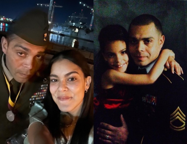 Allison Candelario, the 2024 Operation Homefront Military Child of the year for the Army poses for photos with her father, now Sgt. Maj. Daniel Candelario.
