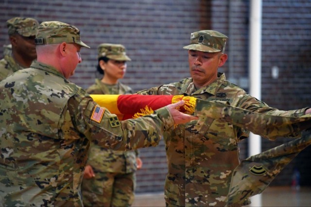 During the ceremony, the flag was uncased by Lindemann and the DIVARTY Command Sgt. Maj. Curtis Moss.