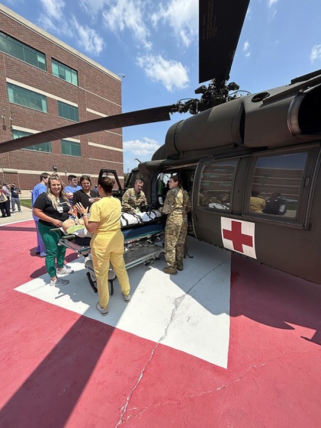 “Aurora BayCare’s participation increases our flight medics’ and aircrews’ exposure and capabilities,” Latza said. “It also increases communication and coordination with civilian organizations in our backyard so that when the domestic mission happens — search and rescue patient drop-off, request to transport a critically ill patient that civilian EMS isn’t able to support — our Soldiers and aircrew members and the civilian medical support infrastructure are familiar with each other.”