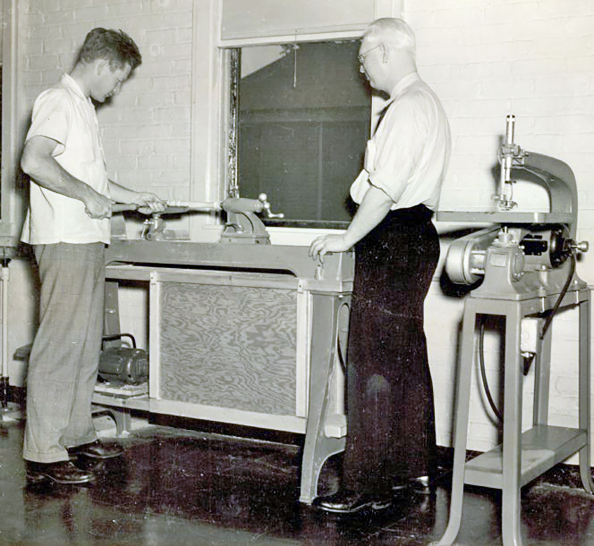 The photo at right shows Veteran Naron Ferguson learning woodworking at the Hines Blind Rehabilitation Center. Ferguson became the first trainee at the center in July 1948 after losing his vision when injured during World War II.