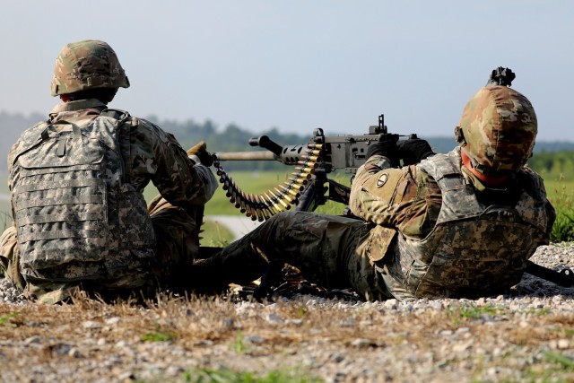 Army Reserve Soldiers assigned to the 157th Infantry Brigade conducted annual training while operating as support elements to Pershing Strike. They practiced skills such as firing the 50 Caliber machine gun.