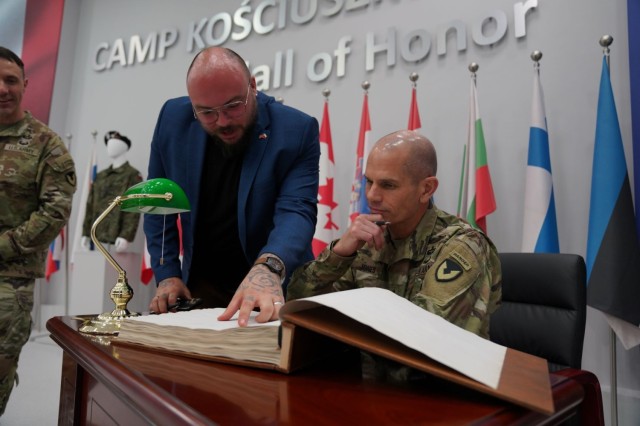 After sharing time with garrison employees at U.S. Army Garrison Wiesbaden, Headquarters of U.S. Army Europe and Africa, Jones and Copeland headed east to visit the newest garrison in the Army in Poznan, Poland.