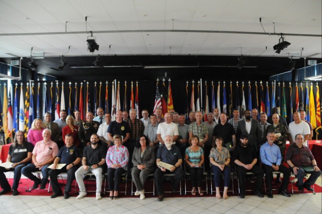 USAG BAVARIA – HOHENFELS, Germany — U.S. Army Garrison Bavaria celebrated centuries of government service shared between U.S. and local national civilian employees during a ceremony July 12, 2024 at the Hohenfels’ Community Activity Center. (U.S. Army photo by Bryan Gatchell, USAG Bavaria Public Affairs) (Photo Credit: Bryan Gatchell)