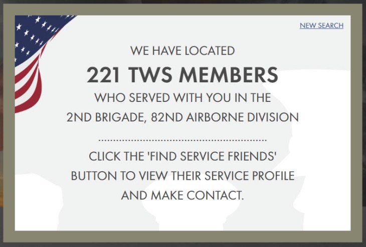 To find a person he or she served with, all a Veteran must do is enter the basic details of their military service on Togetherweserved.com, including the basic training school they were in and the units, bases, ships or squadrons they were assigned to, along with associated time frames. TWS then automatically looks up all other TWS members who served in the same assignments at the same time. That’s then presented as a list of names that links to their service profile and is ready to connect.