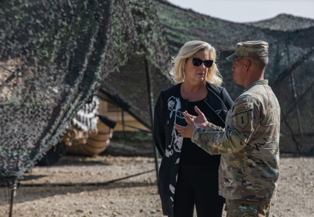 During their tour, Wormuth had the opportunity to observe the exercise as 1st Infantry Division Soldiers worked alongside multinational personnel to solve battle problems in real-time.