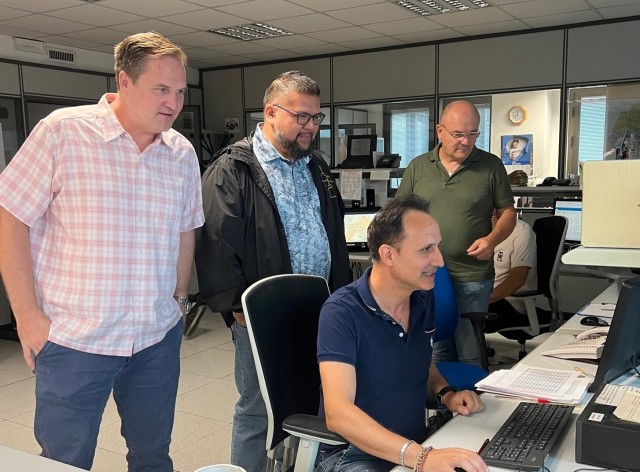 From left, USAG Italy Operations staff Walter Joslin, Manuel Becker Chief of USAG Italy Operations, Questura staff pictured at computer Giovanni Colacicco of the Vicenza Questura, Orazio Pozzolo