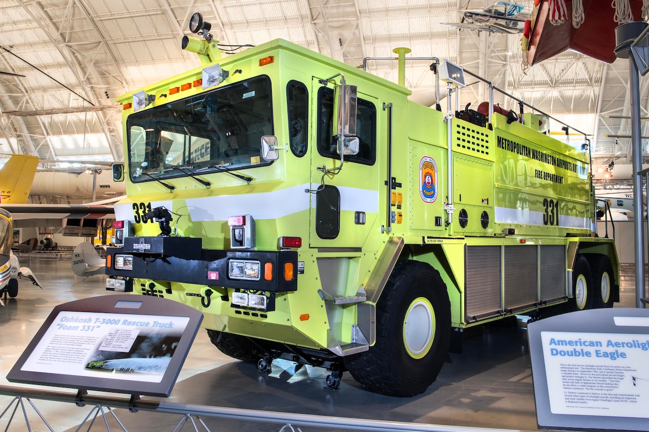 “The primary purpose for this type of vehicle is suppressing aviation fuel fires,” Roger Connor, the Smithsonian’s curator of aeronautics, said of the specialized truck. “These types of apparatus require foam in addition to a powerful suppressing agent … rather than just water.”