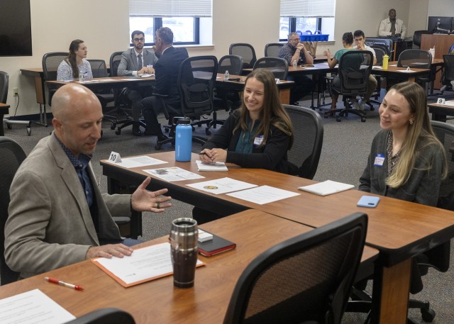 PICATINNY ARSENAL, N.J. – Gregory Roehrich, Acting Deputy Director for the U.S. Army Combat Capabilities Development Command (DEVCOM) Armaments Center’s Enterprise and System Integration Center, speaks with mentees during the Diversity, Equity, and Inclusion (DEI) Council’s speed mentoring and networking event at the Armament University on Aug. 22.