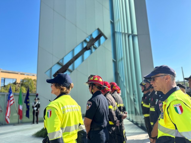 At Camp Darby in Pisa, the U.S. Army Garrison Italy fire department and military hosted a 9/11 ceremony on post. Soldiers also took part in a commemorative event at Pietrasanta, where local officials have an artistic memorial based on the Twin Towers.