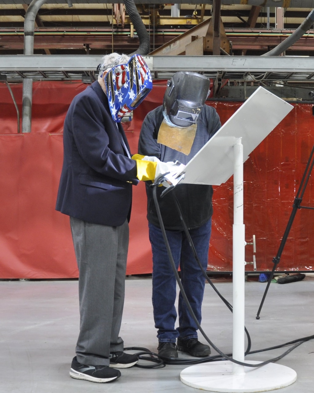 During the ceremony, Marc Cote, a senior welder from General Dynamics BIW, welded Capt. Kelley’s signature onto the keel plate which will be used in the future during the keel laying ceremony.