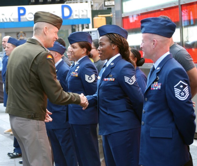 NEW YORK – The National Guard’s top officer capped a day of 9/11 commemorations by reaffirming the service oaths for 24 new or reenlisting National Guard Soldiers and Airmen in Times Square on the afternoon of Sept. 11.