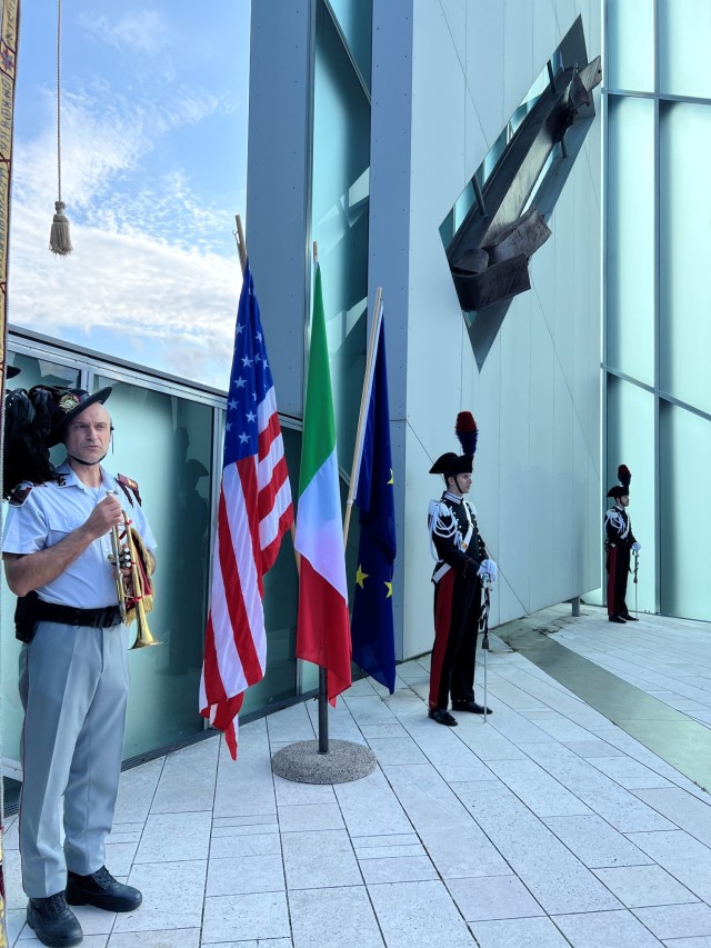 “I believe it is important for me and my city [Padova] to be here to commemorate the events of September 11 in solidarity with the United States,” said Leonardo Rossi, a volunteer bugler for the event from the local bugle association called Nazionale Bersaglieri Padova.