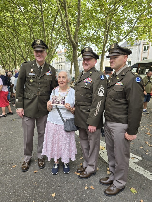 “One of the moments that sticks out to me was after the parade,” recalled Istas. “The command team was standing watching the people in their period dress, when a small older woman holding a picture walked over with her son. Her son told us that she was 8 years old when the 35th Inf. Div. Soldiers came to Orleans. The picture she was holding was of herself with those Soldiers. Her son asked if we’d take a picture with her, and of course we said yes. The expression on this woman’s face and the emotions she displayed while taking a picture with us is one I will never forget.”