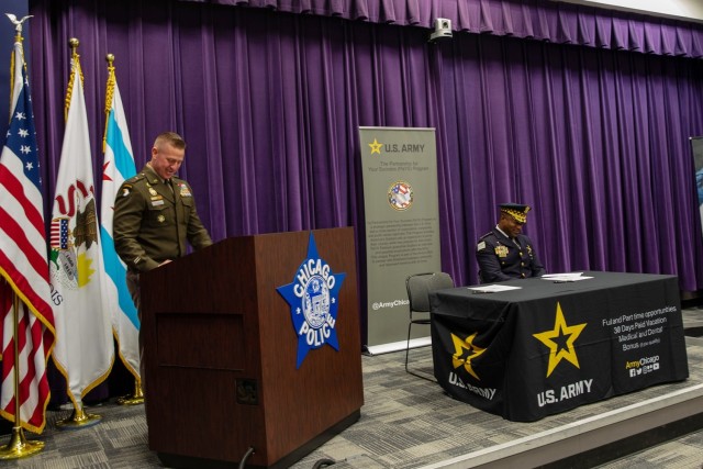 “It is a great honor to be here today and participate in this signing ceremony; this is a win-win opportunity for everyone involved, especially our Soldiers and your potential future employees,” said Shanley. “This partnership is a beacon of hope, offering a promising future for our Soldiers and a pool of talented, dedicated individuals for the Chicago Police Department. This partnership reassures parents that the Army is investing in their children’s future.”