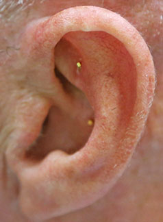 Battlefield acupuncture—also known as auricular acupuncture—is a non-invasive procedure that uses small gold needles strategically placed on five points of each ear to relieve pain throughout the body. This application of acupuncture was first discovered in 2001 by Dr. Richard Niemtzow (USAF retired). He determined that by applying acupuncture techniques to specific points on the ear, pain could rapidly be relieved for soldiers on the battlefield. This treatment option was quickly adopted by the military and later VA as a highly effective way to relieve pain both on and off the battlefield.