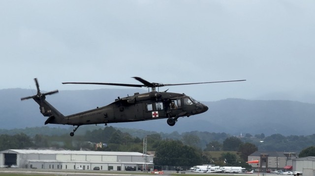Tennessee National Guardsmen assigned to the 1-230th Assault Helicopter Battalion in Knoxville prepared three UH-60L Black Hawk helicopters and crew for aerial rescue operations in Unicoi County. They came to the aid of more than 50 patients and staff stranded at Unicoi County Hospital due to flooding caused by Hurricane Helene. (Photo by Tech. Sgt. Teri Eicher)