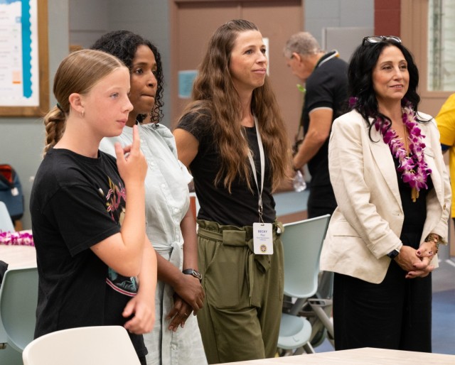 Ms. Lori King, director, Directorate of Family Moral and Welfare, U.S. Army Garrison Hawai’i, fitness icon Jake Steinfeld, chairman of the NFGFC, Teri Waltz, vice principal, Wheeler Middle School and Cheryl Lee, faculty teacher, Wheeler Middle School were present for the ribbon-cutting ceremony, where they commended the school’s commitment to student health and fitness. Steinfeld, known for his motto of “Don’t Quit,” emphasized the role of fitness in academic success, noting that physical activity not only improves health but also boosts confidence, self-esteem, and classroom performance.