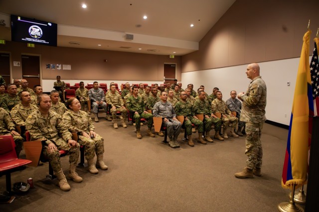 Command Sgt. Maj. of the Colombian army Diego F. Rodriguez addressed the students and reminded them of the important role they will play as primary advisors to their commanders. He encouraged them to adopt the teamwork and professionalism techniques observed during the various visits.