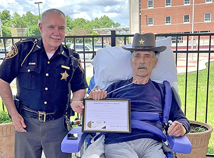 Ellis also provided Bob with a Brown County patch, which Bob wore proudly every day. Bob also received a patch from VA Cincinnati Chief of Police Jon Maggard, along with an honorary police certificate.