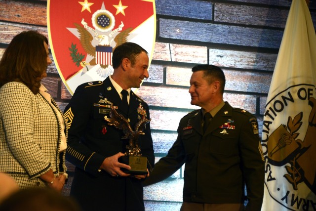 Master Sgt. Jacob Connor, NCO-in-charge of the 101st Airborne Division Public Affairs Office at Fort Campbell, Kentucky won the Sgt. Maj. Dawn Kilpatrick Memorial AUSA Scholarship Award for excellence in Public Affairs.