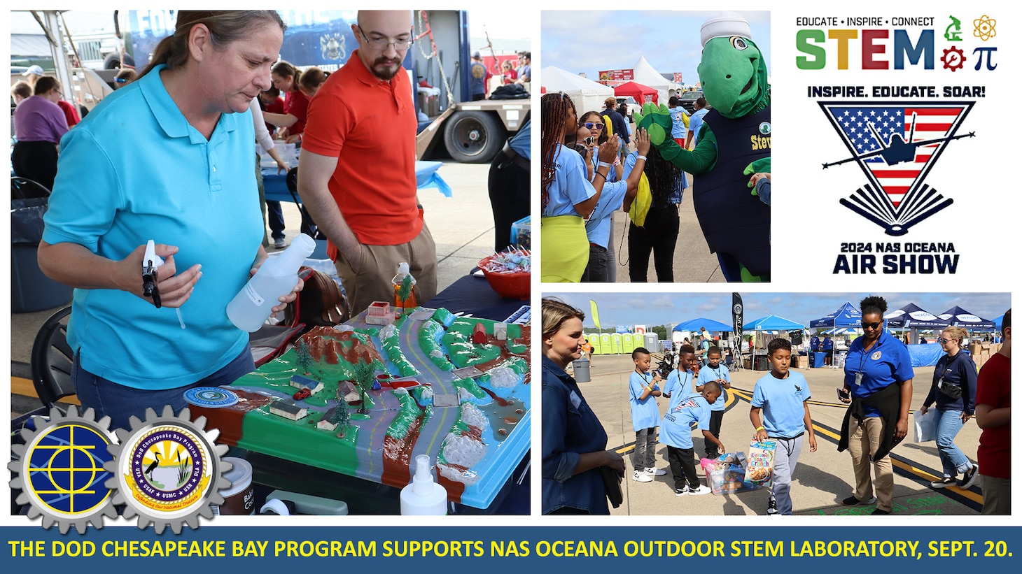 “I’ve been participating in the NAS Oceana Air Show STEM Lab since 2017, and I’m amazed every year by the great questions asked by these students,” said Tara Fisher, PWD Oceana EV Water, Tanks, and Petroleum, Oil, and Lubricants (POL) Program Manager. “We really enjoy interacting with them, and we hope our message of stormwater pollution prevention sticks with them throughout their lives.”